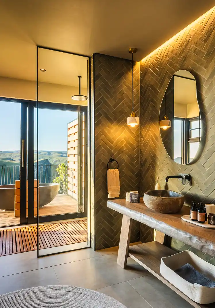 forms meet sustainable innovation, while earthy tones, textured
